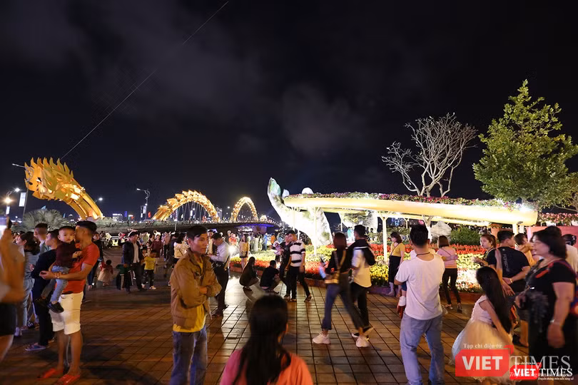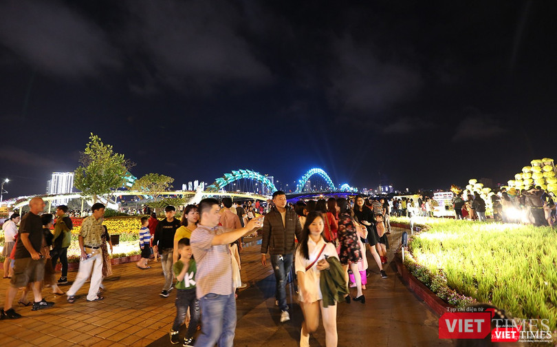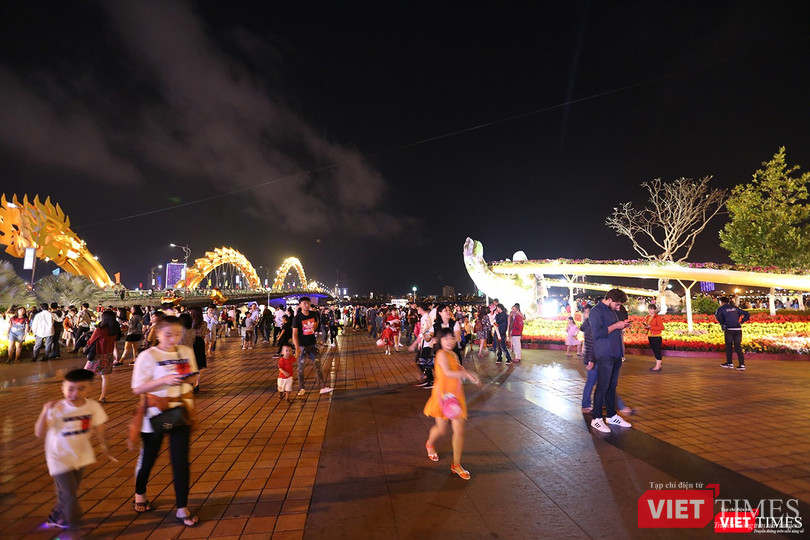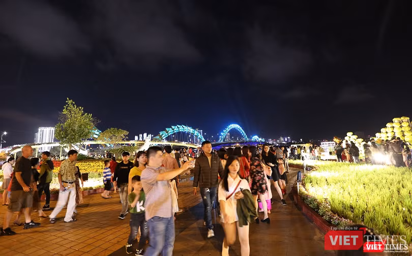 VietTimes -- Sau những bộn bề, lo toan cho kỳ nghỉ Tết Nguyên đán Kỷ Hợi 2019, đêm giao thừa, người dân Đà Nẵng đã đổ ra đường để tận hưởng không khí Xuân đang về khắp mọi nơi.