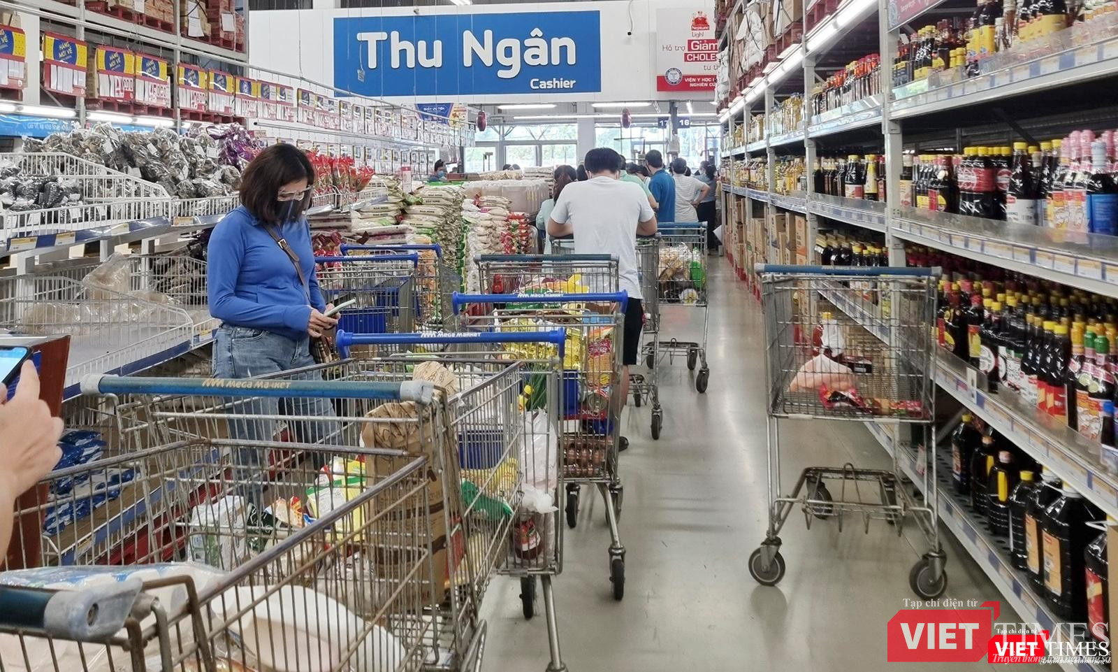 VietTimes xin gửi đến bạn đọc một số hình ảnh người dân đổ xô đi mua nhu yếu phẩm tại một số siêu thị, cửa hàng tiện lợi trên địa bàn (Ảnh VL-XT):