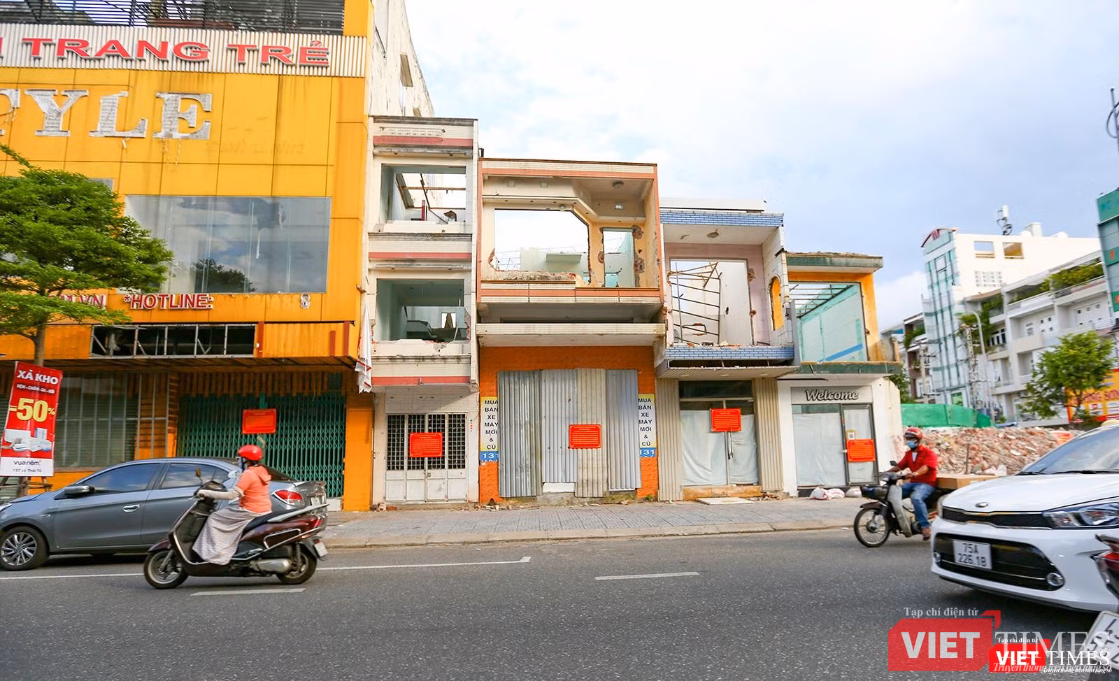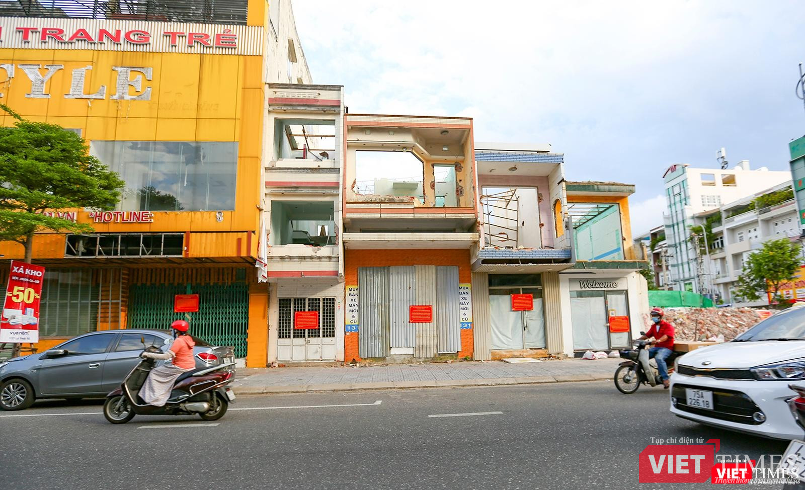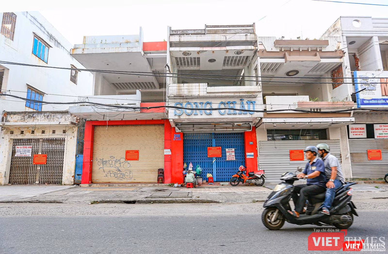 Chạy một vòng sang tuyến đường Hùng Vương- con phố trung tâm lâu đời nhất của Đà Nẵng - cũng cùng cảnh ngộ. Những dãy nhà nhộn nhịp cảnh mua bán xưa đã nhường chỗ cho khoảng đất trống nham nhở, che tôn lụp xụp, xen lẫn những xác nhà đóng cửa im ỉm.