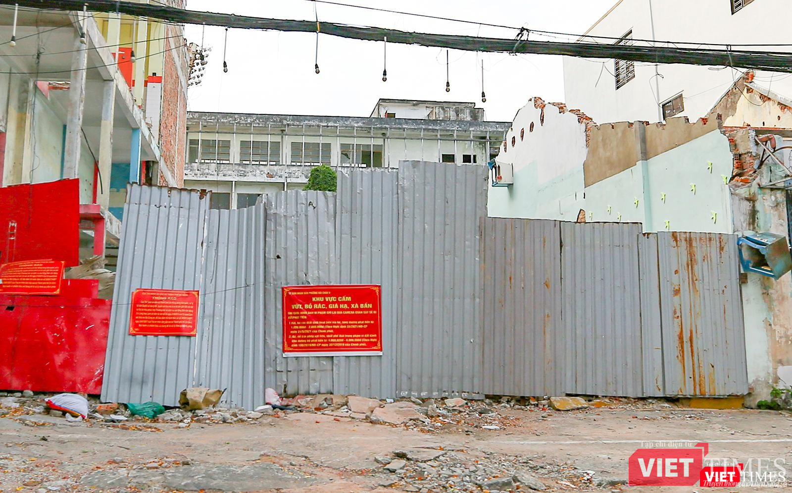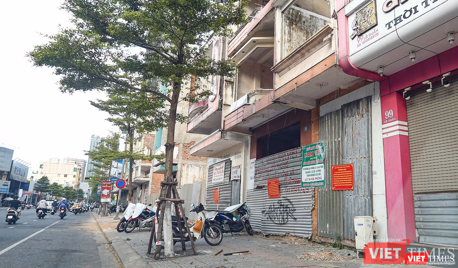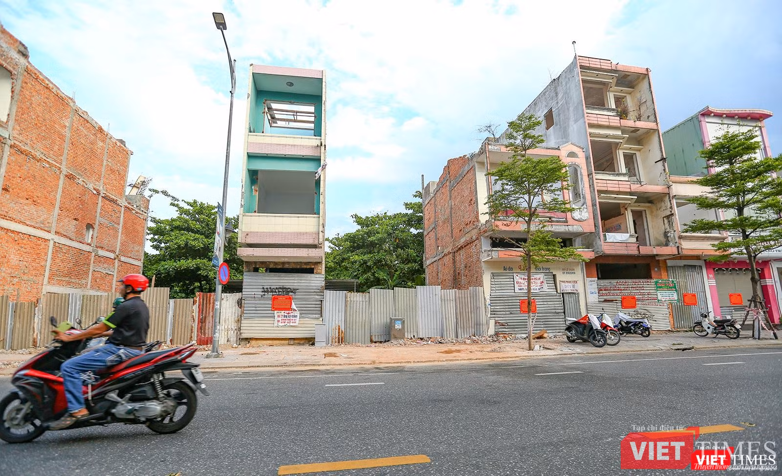 Chạy một vòng sang tuyến đường Hùng Vương- con phố trung tâm lâu đời nhất của Đà Nẵng - cũng cùng cảnh ngộ. Những dãy nhà nhộn nhịp cảnh mua bán xưa đã nhường chỗ cho khoảng đất trống nham nhở, che tôn lụp xụp, xen lẫn những xác nhà đóng cửa im ỉm.