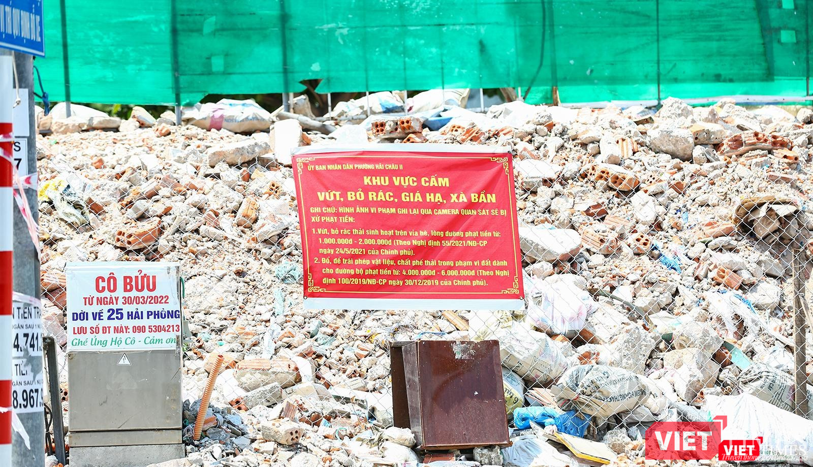 | Đống xà bần cao như núi tại góc ngã tư Lê Duẫn - Chi Lăng |