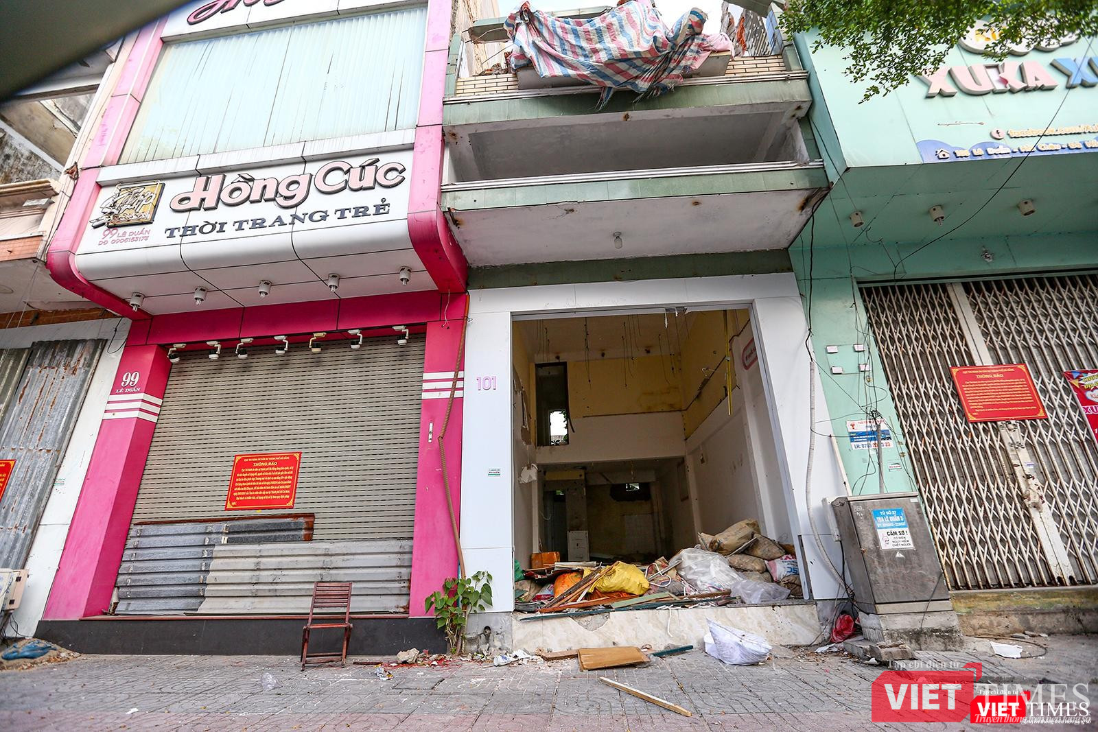 Ghi nhận tại tuyến đường Lê Duẫn, nơi từng là con phố chuyên kinh doanh mặt hàng thời trang, mới thấy xót xa. Tuyến phố với những căn nhà 3-4 tầng bỗng trở nên hoang vắng. Bà Luyến -một người dân ở đây - cho biết: "Thực hiện chủ trương thì người dân di dời thôi, nhưng thấy xót quá. Cả tuyến phố từng sầm uất nay trở nên hoang tàn, bẩn thỉu".