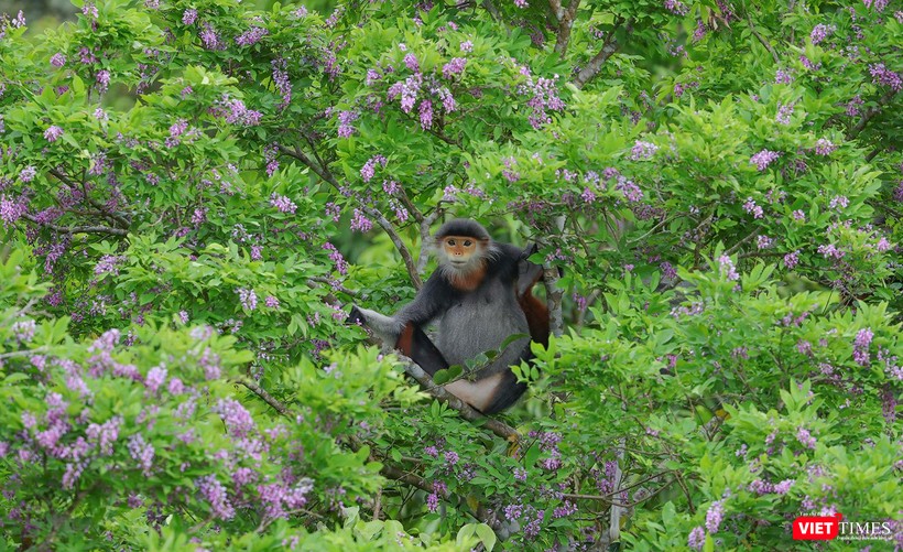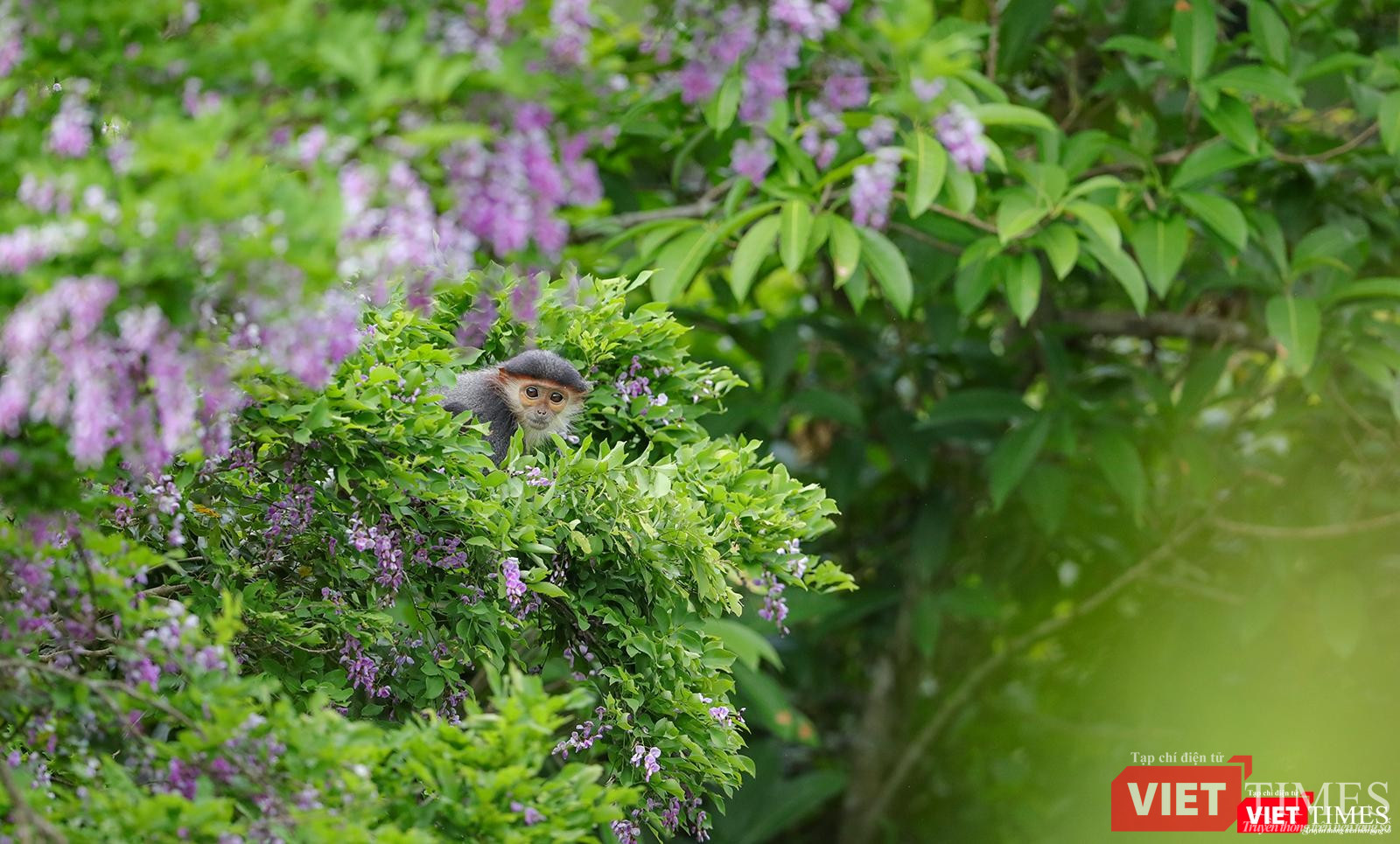 Để bạn đọc cảm nhận được vẻ đẹp khó cưỡng này, VietTimes xin gửi đến bạn đọc những hình ảnh của voọc chà vá chân nâu trên cây hoa thàn mác tím ở Sơn Trà mà nhà báo Hồ Xuân Mai ghi nhận được: