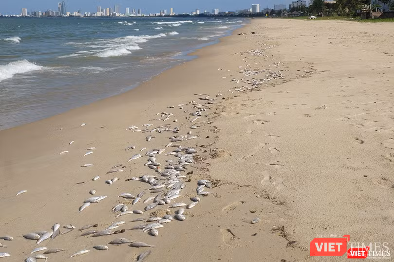 | Cá chết dạt vào bờ biển ở Đà Nẵng |