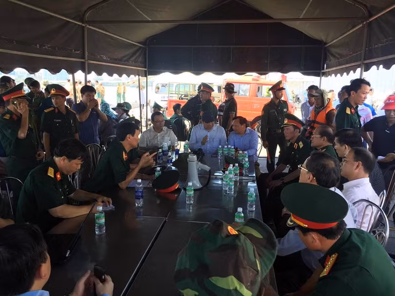 Sở chỉ huy tìm kiếm cứu nạn Đến 11h trưa nay, các lực lượng cứu nạn liên tục triển khai các biện pháp tìm kiếm như tăng cường người nhái lặn tìm xác, sử dụng tàu cơ động rà soát tìm kiếm thêm các khu vực xung quanh, mở rộng phạm vi tìm kiếm ra phía biển.
