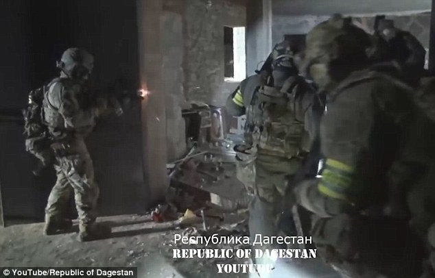 Các lực lượng an ninh cũng cung cấp một video toàn cảnh trận chiến chống khủng bố có sử dụng xe thiết giáp và robot quân sự, video sau đó được đăng tải lên trang Youtube. Sau khi các nhóm nhân viên an ninh và xe thiết giáp chiếm lĩnh vị trí, một robot quân sự có gắn súng tự động và súng phóng lựu, di chuyển về phía ngôi nhà, nơi có các chiến binh và thủ lĩnh Rustam Aselder ẩn nấp.