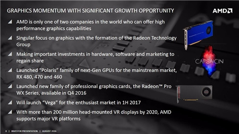 Trong bản báo cáo định kỳ gửi đến các nhà đầu tư trong tháng 8/2016, hãng AMD đề cập rằng card đồ họa sử dụng kiến trúc Vega sẽ không có trước năm 2017.