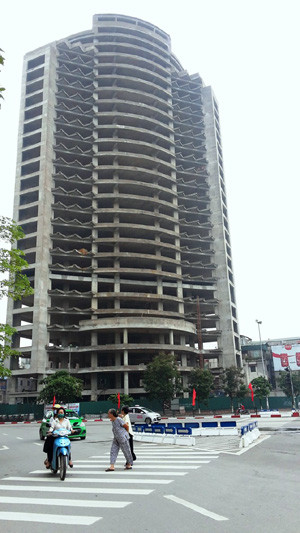Tòa tháp xây xong phần thô rồi "bất động" nhìn từ hướng đường Thái Hà