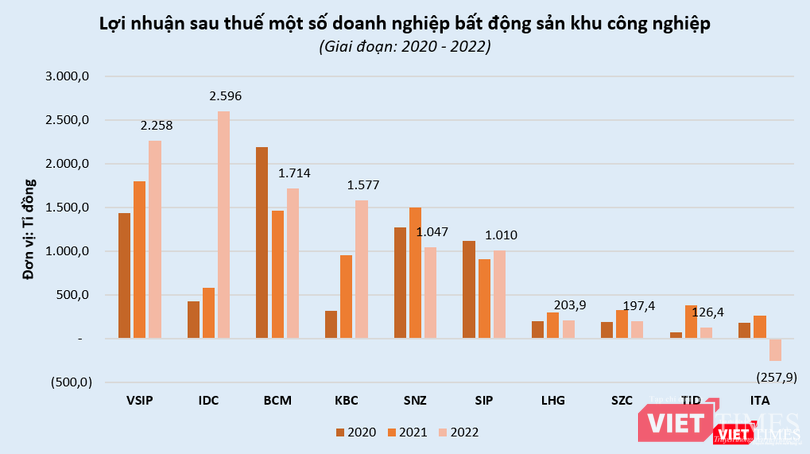 Tuy vậy, thống kê của VietTimes cho thấy, mức lợi nhuận ròng của VSIP trong năm 2022 vẫn xếp sau Tổng công ty Idico - CTCP (Mã CK: IDC).