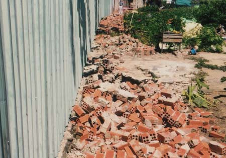 Đầu tháng này, gió lốc cuốn sập hàng rào 45 m nên tôi mua vật tư để xây lại, không cho người vào đó đá gà, hút chích, xả rác. Khi đang xây thì bị địa phương cho người đến phá bỏ, gây thiệt hại cho tôi khoảng 100 triệu đồng.