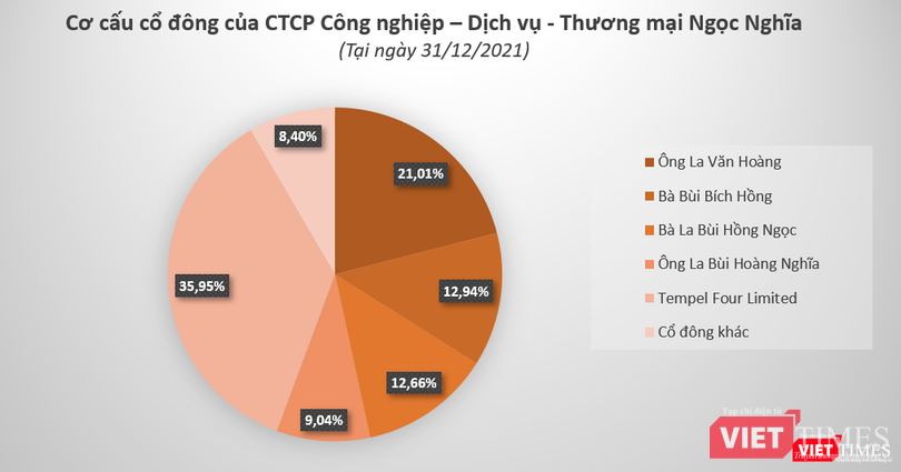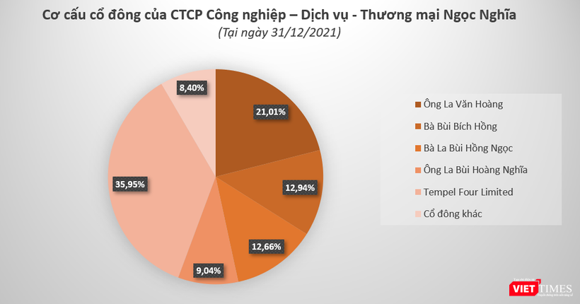 Cụ thể, tính đến ngày 31/12/2021, NNG ghi nhận 5 cổ đông lớn, lần lượt là: Tempel Four Limited (29,32 triệu cổ phiếu; chiếm 35,95% VĐL), ông La Văn Hoàng (17,13 triệu cổ phiếu; chiếm 21,01% VĐL), bà Bùi Bích Hồng (10,55 triệu cổ phiếu; tương đương 12,94% VĐL), bà La Bùi Hồng Ngọc (10,32 triệu cổ phiếu; tương đương 12,66% VĐL), và ông La Bùi Hoàng Nghĩa (7,37 triệu cổ phiếu; tương đương 9,04% VĐL).