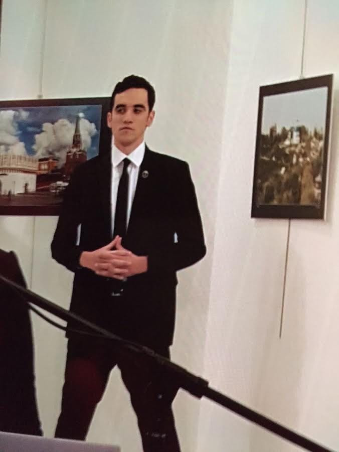 Người đàn ông này đã bắn vào lưng đại sứ Andrei Karlov khi ông đang kết thúc bài phát biểu của mình. Bị trúng đạn, đại sứ Karlov ngã xuống sàn nhà.