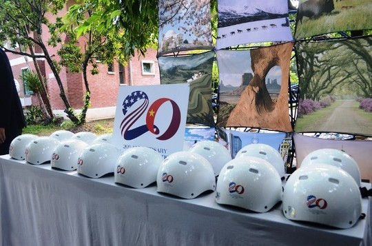 Tại đây, ngài Đại sứ Ted Osius đã trao mũ bảo hiểm cho các trẻ em của làng trẻ em SOS