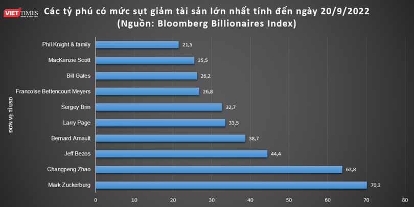 Đây cũng là thứ hạng thấp nhất của CEO Meta Platforms kể từ năm 2014. Tính từ đầu năm 2022, tài sản của Mark Zuckerberg đã giảm đến 71 tỉ USD.