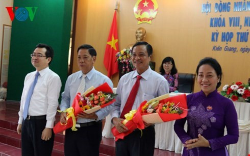 Chủ tịch UBND tỉnh Kiên Giang Phạm Vũ Hồng (thứ 3 từ trái qua). Ảnh: VOV