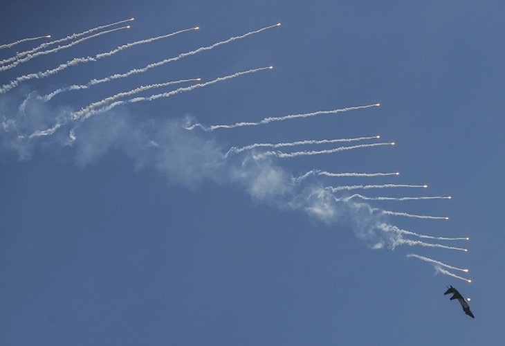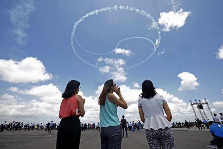 Một chiếc chiến đấu cơ F-15 của Singapore tham gia biểu diễn. Ảnh EPA