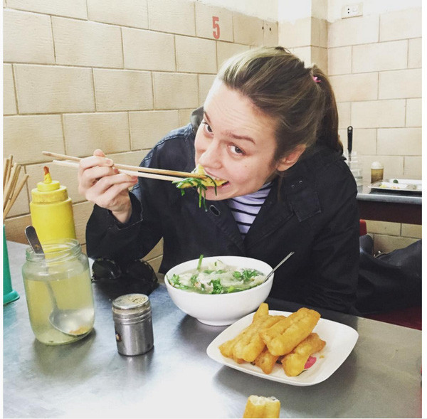 Nữ diễn viên Brie Larson thì khoe ảnh ăn phở trên Instagram, khiến các fan Việt bình luận thích thú