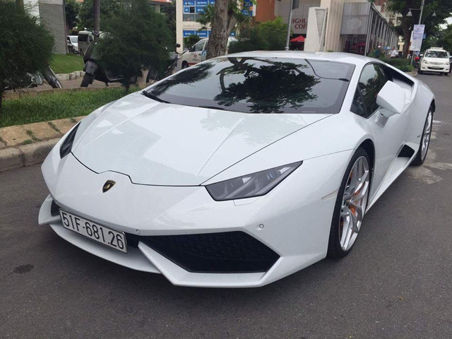 Đi cùng siêu xe Huracan vẫn là chiếc Lamborghini Aventador LP700-4 màu trắng quen thuộc. Ảnh: Trung Phong.