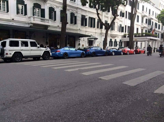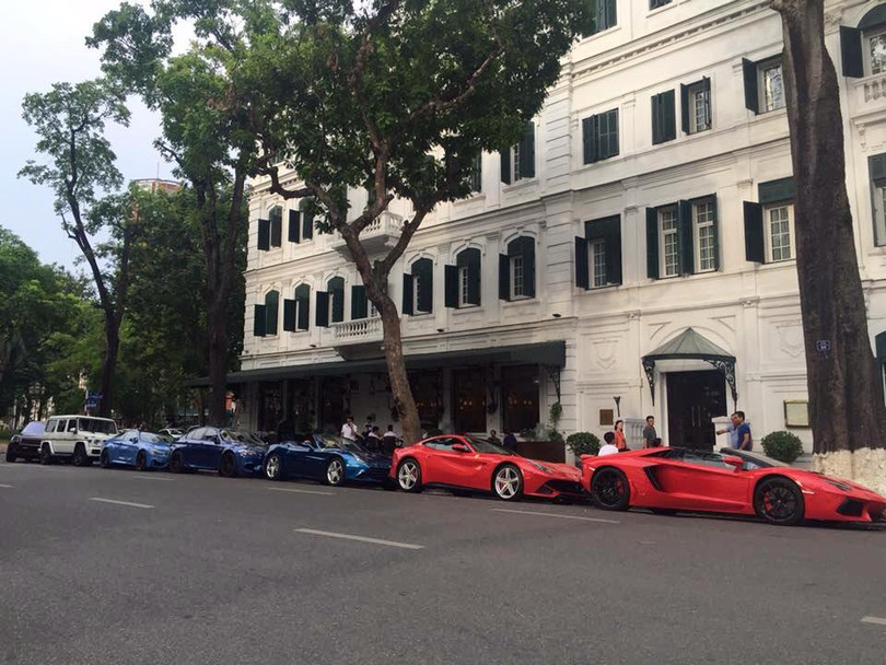 Còn với đoàn siêu xe tại Hà Nội cũng không kém cạnh khi có sự xuất hiện của những siêu xe hàng hot mới cập bến thị trường Việt Nam như Ferrari F12 Berlinetta, Lamborghini Aventador LP700-4 mui trần, Ferrari California T hay Mercedes G63 AMG.
