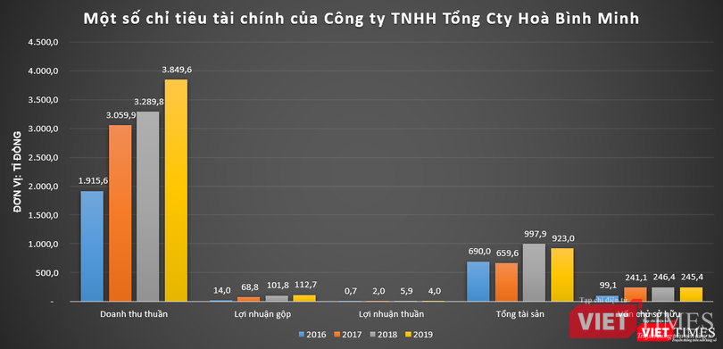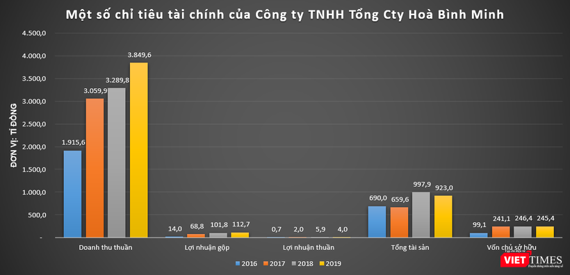Lưu ý rằng, tính đến cuối năm 2019, quy mô vốn chủ sở hữu của Công ty TNHH Tổng Công ty Hoà Bình Minh mới chỉ ở mức khiêm tốn 245,4 tỉ đồng.