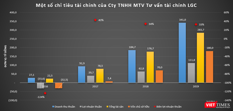 Còn trong năm 2019, LGC ghi nhận doanh thu đạt 341 tỉ đồng, báo lãi thuần lên tới 111,79 tỉ đồng – tức cứ 3 đồng doanh thu, LGC thu về 1 đồng lãi. Đây là biên lợi nhuận đáng mơ ước mà nhiều tổ chức tín dụng khó có thể đạt được.
