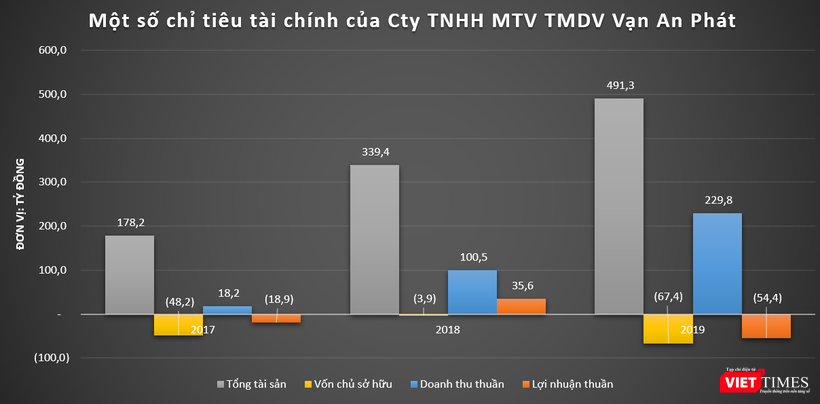 Riêng năm 2019, Vạn An Phát ghi nhận doanh thu thuần đạt mức 229,78 tỉ đồng, cao gấp 2,2 lần so với năm 2018. Tuy nhiên, doanh nghiệp này lại báo lỗ tới 54,4 tỉ đồng vào năm ngoái. Khoản lỗ này khiến vốn chủ sở hữu của Vạn An Phát tính đến ngày 31/12/2019 đạt âm 67,4 tỉ đồng, mức thấp nhất trong 3 năm trở lại đây.