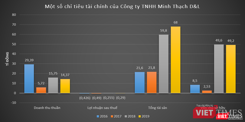 Dữ liệu của VietTimes cho thấy, trong giai đoạn 2016 - 2019, Công ty TNHH Minh Thạch D&L liên tục báo lỗ với lỗ sau thuế lũy kế 4 năm lên tới 1,46 tỉ đồng.