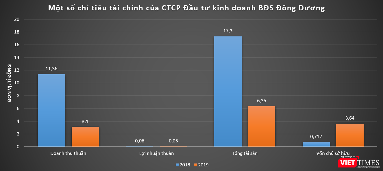 Dữ liệu của VietTimes cũng cho thấy, sau hơn 2 năm hoạt động, tại ngày 31/12/2019, quy mô vốn chủ sở hữu của Đông Dương mới chỉ đạt hơn 3,64 tỉ đồng, kém xa quy mô vốn điều lệ 100 tỉ đồng đã đăng ký khi mới thành lập. Bên cạnh đó, công ty này cũng ghi nhận kết quả kinh doanh khiêm tốn với các khoản lãi lần lượt 66 triệu đồng và 50 triệu đồng cho các năm 2018 và 2019.