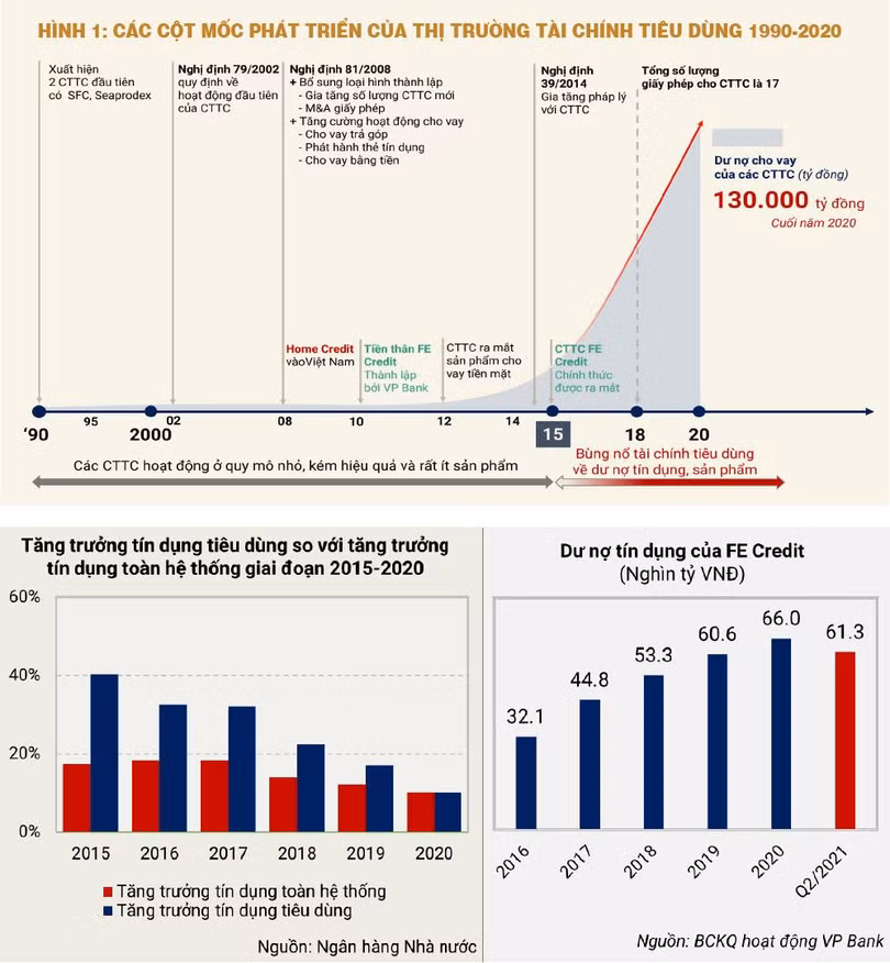 Trước tiên, cần nhìn lại bức tranh tổng thể về quá trình hình thành và phát triển của nhóm ngành tài chính tiêu dùng từ các công ty tài chính.