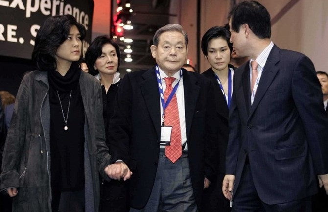 Ông Lee Kun-hee (giữa) cùng con gái cả Lee Boo-jin (trái), con gái thứ ba Lee Seo-hyun (phải).