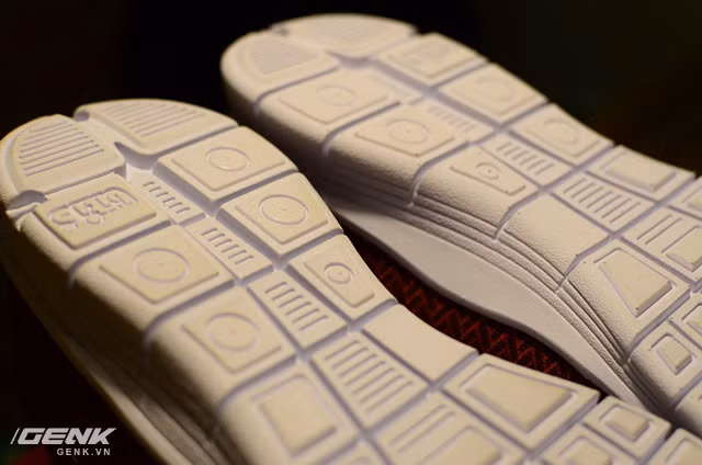 Tuy nhiên, Biti's hoàn toàn bỏ đi lớp cao su tăng độ bám và miếng nhựa TPU hỗ trợ gan bàn chân ở giữa đế (trên Hunter Originals và Hunter Liteknit Summer Vibes) hoàn toàn có lý do: giảm trọng lượng tổng thể trên Hunter Feast. Khi xỏ chân vào đôi Feast là cảm giác êm ái và rất nhẹ (nhẹ nhất trong 3 phiên bản tiền nhiệm).