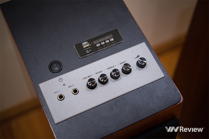 Thử chất lượng Karaoke ngay với mic đi kèm, âm thanh ra trong, nhiễu nền thấp và chi tiết âm thanh khá. Bộ loa có thể tinh chỉnh EQ theo ý muốn cũng giúp hỗ trợ tốt cho mục đích Karaoke. Mình đặt EQ phần treb luôn cao hơn Bass một chút, âm thanh sẽ cân bằng và thoáng đãng hơn, ví dụ như Bass chỉ để hướng khoảng 8-9h còn Treb sẽ đặt khoảng 9-10h. Hiệu ứng Echo tiếng vang và nút tăng chỉnh âm lượng riêng cho phần mic giúp cho việc hát Karaoke với bộ loa này cũng thú vị và dễ dàng dù không đa dạng và phong phú như những bộ âm-ly Karaoke chuyên dụng.