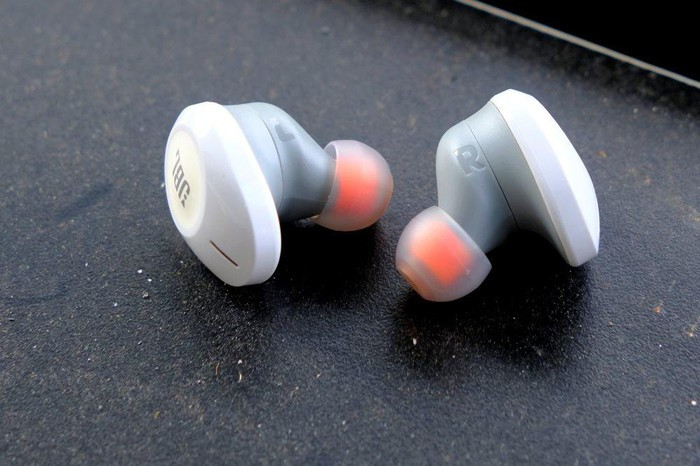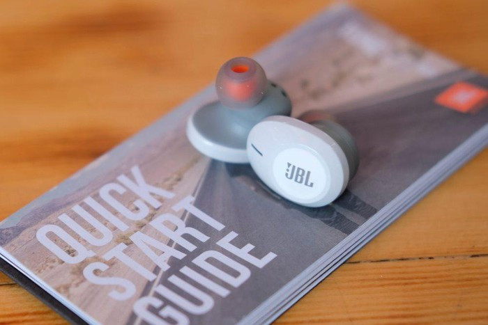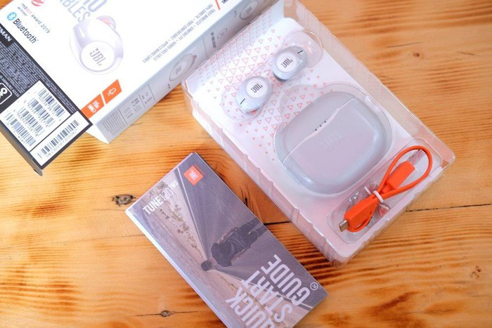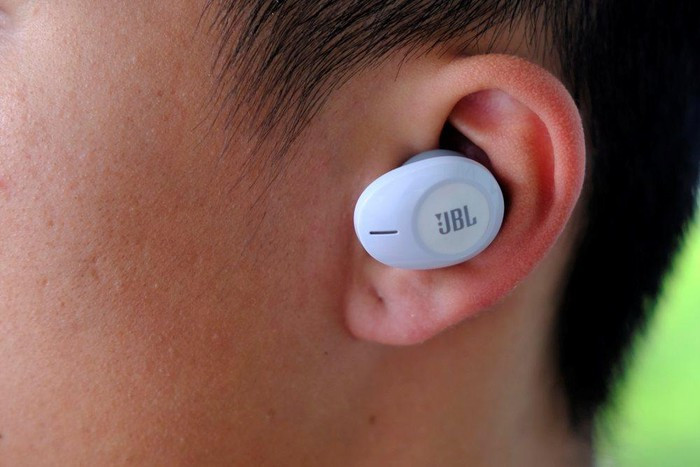 Cặp tai nghe của JBL thiết kế tương đối đơn giản. Mỗi bên tai đều được đánh dấu cho người dùng phân biệt bên tai trái (L) - phải (R), nhưng sau thời gian sử dụng người dùng sẽ cực kỳ quen thuộc để biết tai nào ở vị trí nào, không cần nhìn vào chữ đánh dấu.