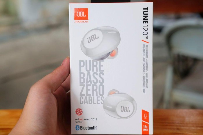 Hộp chiếc JBL Tune 120tws phiên bản trắng.