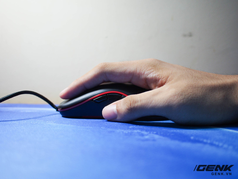 Tay tôi khá to nên khi thử nghiệm cầm theo kiểu Palm Grip thấy hơi hẫng, nhưng khi chuyển sang sử dụng cầm kiểu Claw Grip thì lại có thể thoải mái bấm các nút phụ bên hông. So với chiếc Rival 100 PC Bang cùng tầm giá thì những nút bấm này có phần hơi nhỏ hơn và không dễ bấm bằng. Bù lại Neon M10 lại có 2 cặp nút phụ ở 2 bên giúp người dùng tay trái hay phải đều có cặp nút phụ ở ngón cái khi cần.