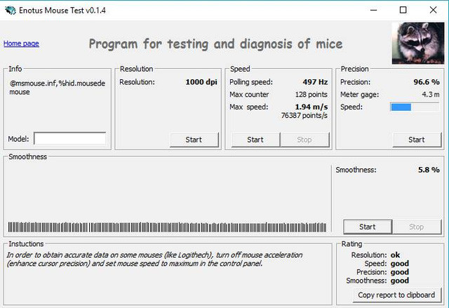 Sử dụng phần mềm Enotus Mouse Test để kiểm tra, các thông số khá ấn tượng với tầm giá của Ozone Neon M10. Độ chính xác - điều mà nhiều game thủ quan tâm - luôn đạt mức 96%-99%sau nhiều lần test. Tốc độ tối đa cũng ở mức cơ bản ~2 m/s của hầu hết chuột gaming tầm giá dưới 1 triệu. Tốc độ này thỏa mãn được hầu hết nhu cầu của game thủ, còn nếu bạn là một người chơi game FPS hardcore thì có lẽ sẽ không phù hợp lắm.