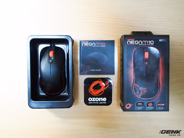 Ozone kèm theo trong hộp sản phẩm Neon M10 sách hướng dẫn sử dụng nhanh và sticker. Cách sử dụng cơ bản cũng khá đơn giản, bạn chỉ cần chú ý phần cách thay đổi DPI và chuyển chế độ sử dụng tay trái hoặc tay phải.