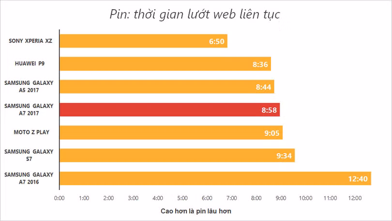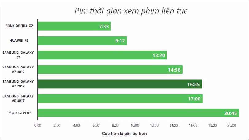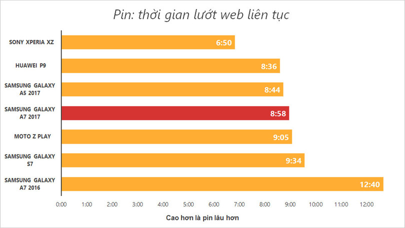 A7 2017 có thời lượng pin tốt, đáp ứng được 2 ngày với cường độ khá cao