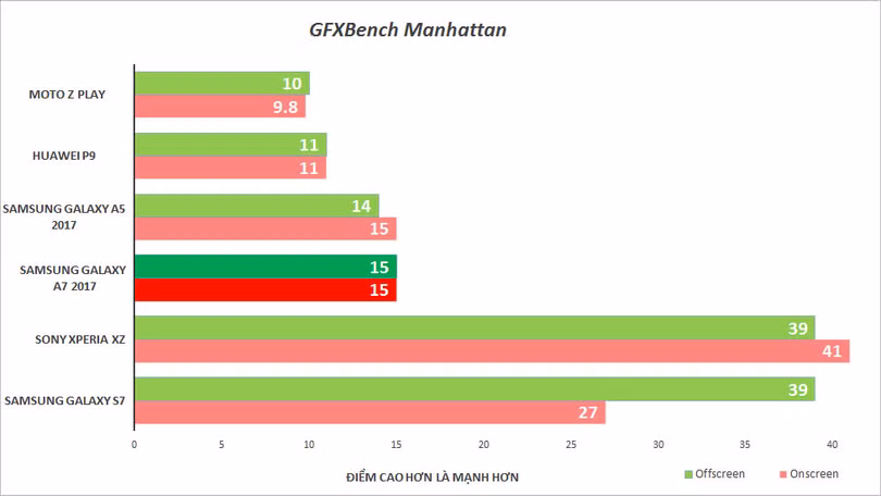Hiệu năng của A7 2017 mạnh mẽ hơn nhiều so với thế hệ trước, nhưng vẫn không so được với máy cao cấp