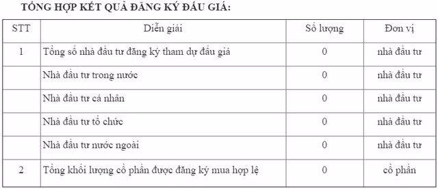 Tuy nhiên, trong đợt này không có nhà đầu tư nào đăng ký tham gia.