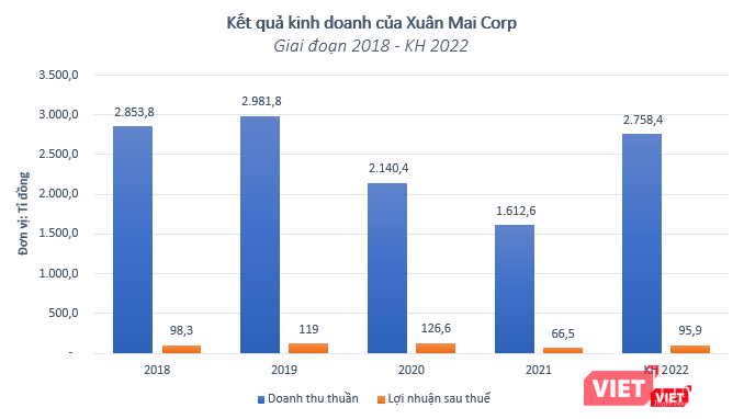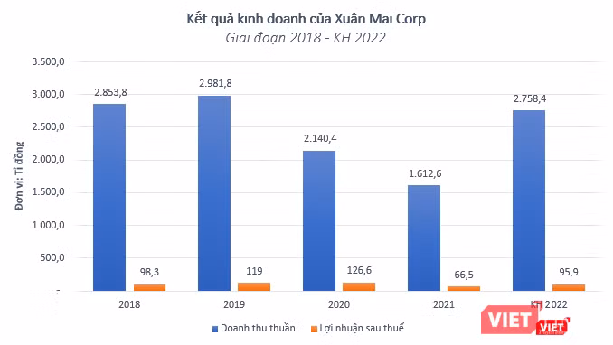 Kết thúc quý 1/2022, Xuân Mai Corp ghi nhận doanh thu thuần đạt 295,5 tỉ đồng, tăng 24% so với cùng kỳ năm trước. Tuy nhiên, sau khi trừ đi chi phí, công ty này báo lỗ sau thuế 18 tỉ đồng.