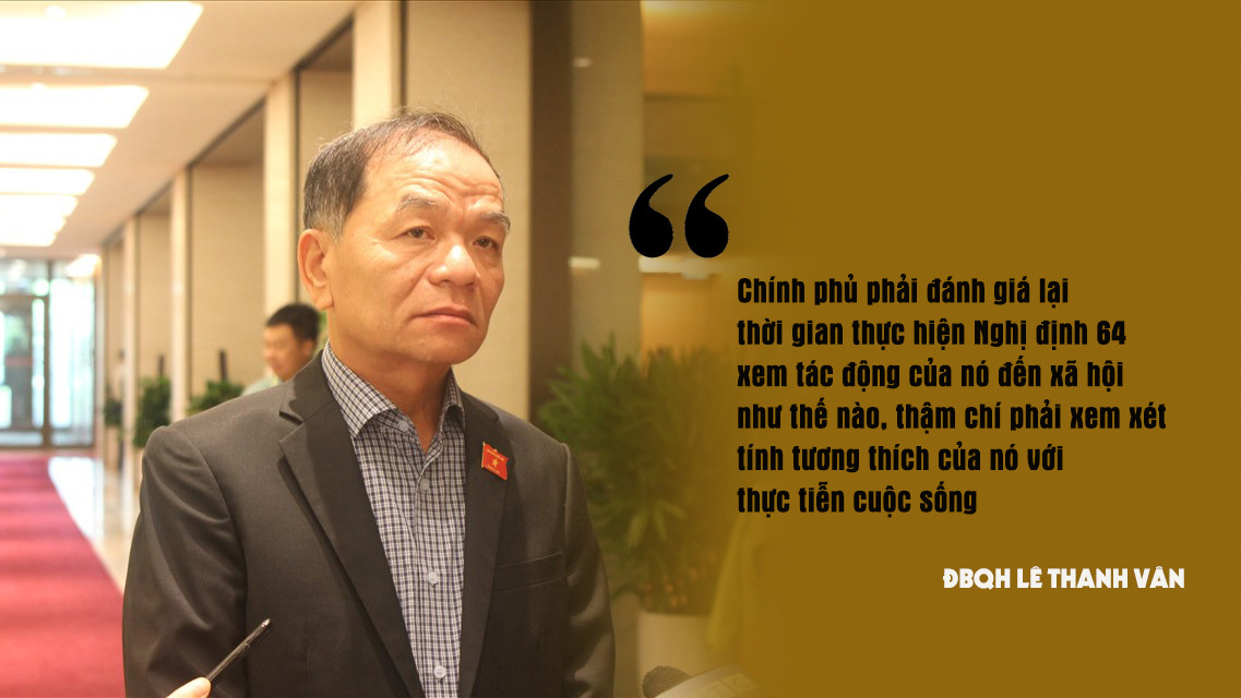 ĐBQH Lê Thanh Vân: Tôi nghĩ là sau đợt này thì Chính phủ cần phải tổng kết, đánh giá lại việc thực hiện Nghị định 64 trong thời gian qua. Nghị định đã lạc hậu, không còn phù hợp với sự thay đổi của những quan hệ xã hội gần đây. Từ đó sửa đổi hoặc ban hành mới các văn bản cho phù hợp.