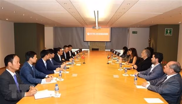 Quang cảnh làm việc giữa Đoàn công tác và Lãnh đạo Đảng Cách mạng Thể chế (PRI) của Mexico. (Ảnh: Phi Hùng/TTXVN)
