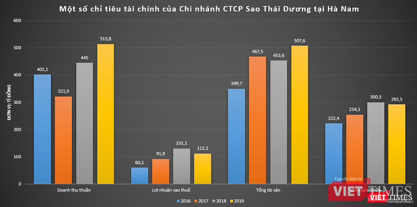 Cụ thể, năm 2016, doanh thu thuần và lợi nhuận sau thuế của chi nhánh Sao Thái Dương tại Hà Nam lần lượt đạt mức 402,1 tỉ đồng và 60,1 tỉ đồng, tương ứng với tỉ suất lợi nhuận đạt 14,9%. Chỉ tiêu này tiếp tục tăng trưởng trong hai năm sau đó, đạt đỉnh ở mức 29,4% vào năm 2018. Luỹ kế trong vòng 4 năm (từ 2016 – 2019), đơn vị này ghi nhận lợi nhuận sau thuế lên tới 395,3 tỉ đồng.