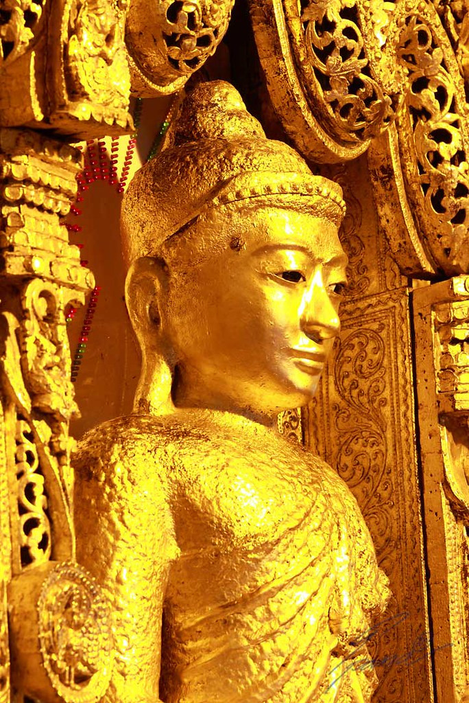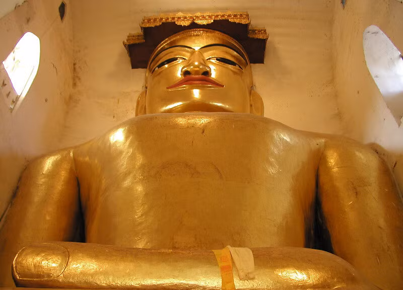 Bức tượng Phật ngồi đặc biệt này nằm ở Ngahtatgyi Paya, một ngôi chùa cổ nổi tiếng ở thị trấn Bahan, Yangon. Đức Phật mặc áo choàng mạ vàng với những đồ bảo vệ như khiên, cầu vai cũng mạ vàng, tạo cảm giác như đang mặc áo giáp. Nguyên mẫu ban đầu của bức tượng cao 6.2m, được quyên tặng bởi Hoàng tử Minyedeippa vào năm 1558. Đến năm 1900, một bức tượng khác, chính là bây giờ, cao 13.9m tính cả bệ và 9.1m không tính bệ, rộng 14m được dựng lên. Nếu bạn đến Myanmar và hỏi về Đức Phật mặc áo giáp, hầu như mọi người đều có thể trả lời và chỉ đường cho bạn.