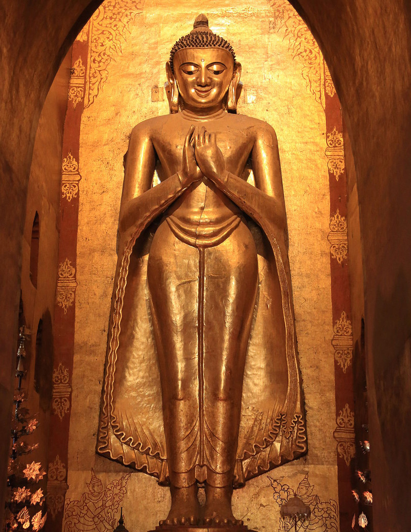 Ananda là một trong bốn ngôi chùa cổ còn sót lại ở Myanmar, được xây dựng theo phong cách Myanmar và Ấn Độ. Trong chùa có bốn pho tượng Phật đứng khá lớn. Trong đó có một pho tên là Kassapa trong tư thế Dharmachakra Mudra đang mỉm cười nhìn về phía nam. Phật Kassapa là người thứ ba trong năm vị Phật của Kalpa - Bhadda Kappa. Tượng Phật Kassapa có từ đầu thế kỷ 12 khi chùa Ananda mới được xây dựng, được bao phủ bằng lá vàng, nâng lên cao 2.5m trên ngai vàng. Một số ý kiến cho rằng tượng được đúc bằng đồng.