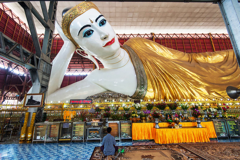 Đây là một bức tượng Phật nằm khổng lồ với chiều dài 66m và chiều cao 16m ngụ tại chùa Chaukhtatgyi Paya, Yangon. Bức tượng mô phỏng một vị Phật đang nằm mặc áo choàng bằng vàng, cánh tay phải gác đầu, gương mặt thanh tú và đôi mắt mở to nhìn xuống. Điều đáng nói là đôi mắt có phần chau truốt với phấn mắt bao quanh màu xanh và lông mi dài cực đại 33cm. Gương mặt trắng, môi đỏ, móng tay đỏ, đôi bàn chân quá khổ so với tổng thể kích cỡ và có đến 108 khúc màu vàng, đỏ ở lòng bàn chân.