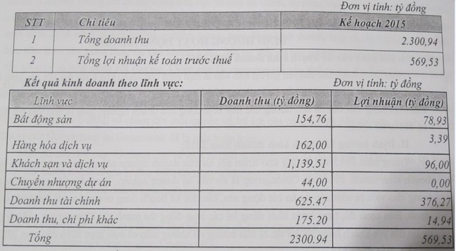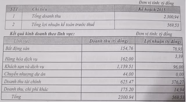 Kết quả kinh doanh “bi đát” năm 2014 không ngăn việc OGC đặt kế hoạch năm 2015 tương đối lạc quan với chỉ tiêu Tổng doanh thu và LNTT lần lượt đạt 2.300 tỷ đồng và 570 tỷ đồng – bằng con số kế hoạch đã đưa ra trong cuộc họp lần 1.
