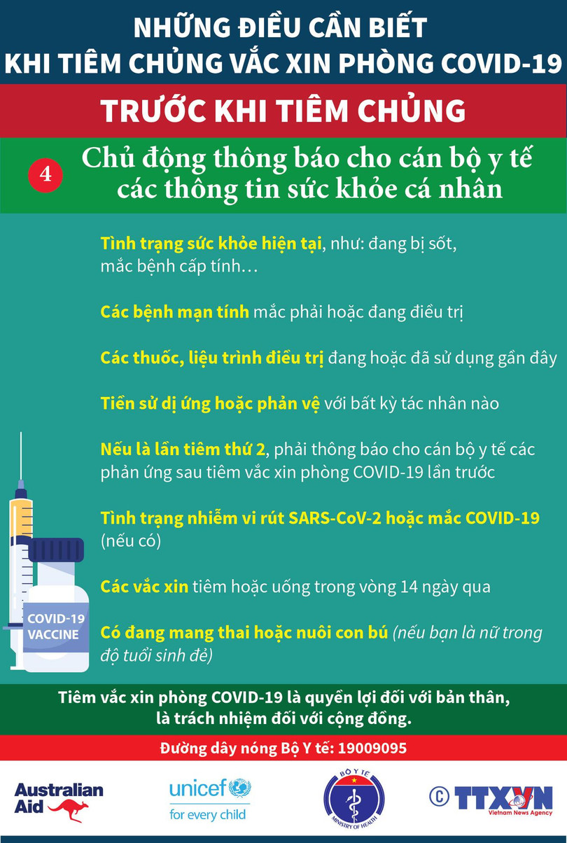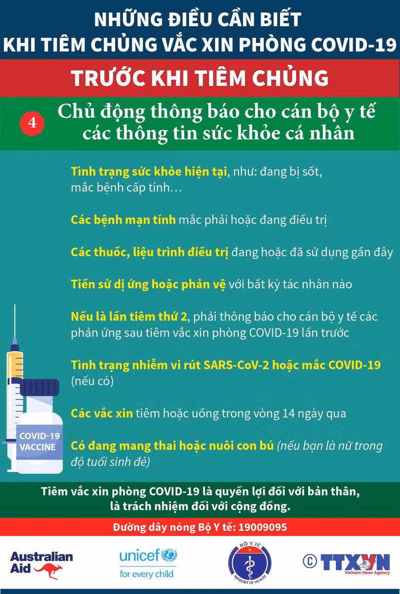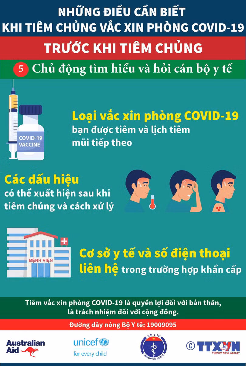 Nhằm giúp người dân nắm rõ những quy định khi tiêm vaccine phòng COVID-19, Bộ Y tế đã đưa ra hướng dẫn về những điều cần biết khi tiêm vaccine phòng COVID-19 để việc tiêm vaccine an toàn, hiệu quả.