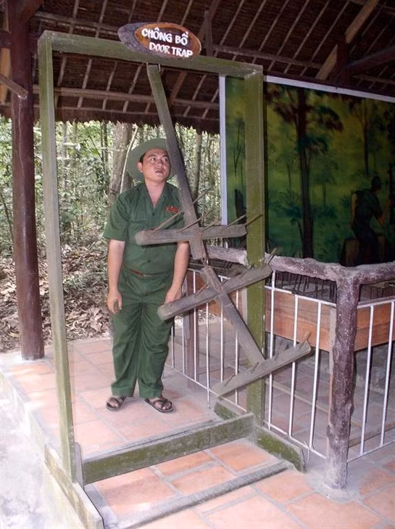 Chông bồ cào. Mở rộng cửa đón những GIS là những cánh cửa hiếu khách của Việt Nam. Chế tạo cái bẫy này khá đơn giản. Chỉ cần hai ống tre đặc gắn lại với nhau thành hình chữ T, thanh ngang được đóng những chiếc chông nhọn sắc dài, chông bổ được treo lên cao, nối với một cái dây và sợi dây nhỏ được giăng ngang mặt đất – thường sử dụng dây cước để khó nhận ra, khi lính địch bước vào cửa và vướng vào sợi dây, kết quả sẽ là hai ống chân hoặc bắp đùi sẽ bị chông xuyên thủng.